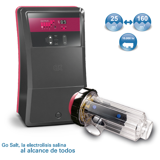 GS-7 / Produção 7 gr Cl2/hr / Para piscinas de até 25 m3 GS-12 / Produção 12 gr Cl2/hr / Para piscinas de até 50 m3 GS-21 / Produção 21 gr Cl2/hr / Para piscinas de até 80 m3 GS-30 / Produção 30 gr Cl2/hr / Para piscinas de até 120 m3 GS-40 / Produção 40 gr Cl2/hr / Para piscinas de até 160 m3Funções e controle do Clorador Salino Go Salt CTX