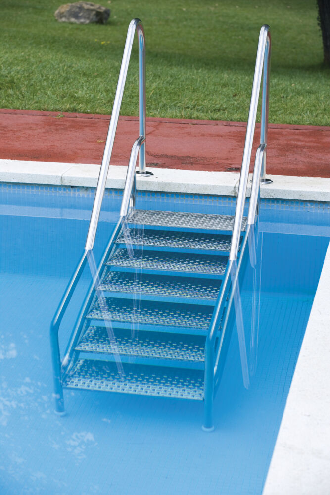 Apresentamos a escada de segurança EASY LAND da casa Flexinox. Está fabricada em aço inox ISI 316. Esta escada de máxima segurança está disponível com 5, 6 ou 7 degraus e são anti-derrapantes.