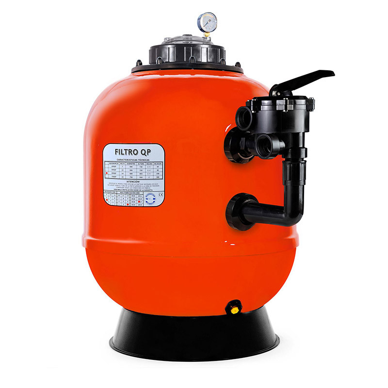 O filtro de areia laminado, fabricado pelo Produtos QP, é uma gama de filtro fabricado com poliéster de alta resistência. Feito em cor vermelho metalizado de alto brilho, destaca por ser um filtro de qualidade e a um preço económico. Estão fabricados com diâmetros de ø 500, ø 600, ø 750 e ø 900, com caudais de água desde 10m³ no modelo mais pequeno, pensado para piscinas de reduzido tamanho, até o modelo 900, que suporta uma carga de 32 m³. Incorpora na parte superior um manómetro de pressão e uma tampa transparente com parafusos. O Grana QP tem incluído tudo aqui precisamos numa piscina, válvula seletora de 6 posições com a que podemos trabalhar as funções de lavado, filtração, re-circulação, esvaziamento, etc. Este fabricante carateriza-se por estar no TOP10 de vendedores de material de piscina. Melhorando ano após ano, oferece-nos produtos para todos os bolsos.