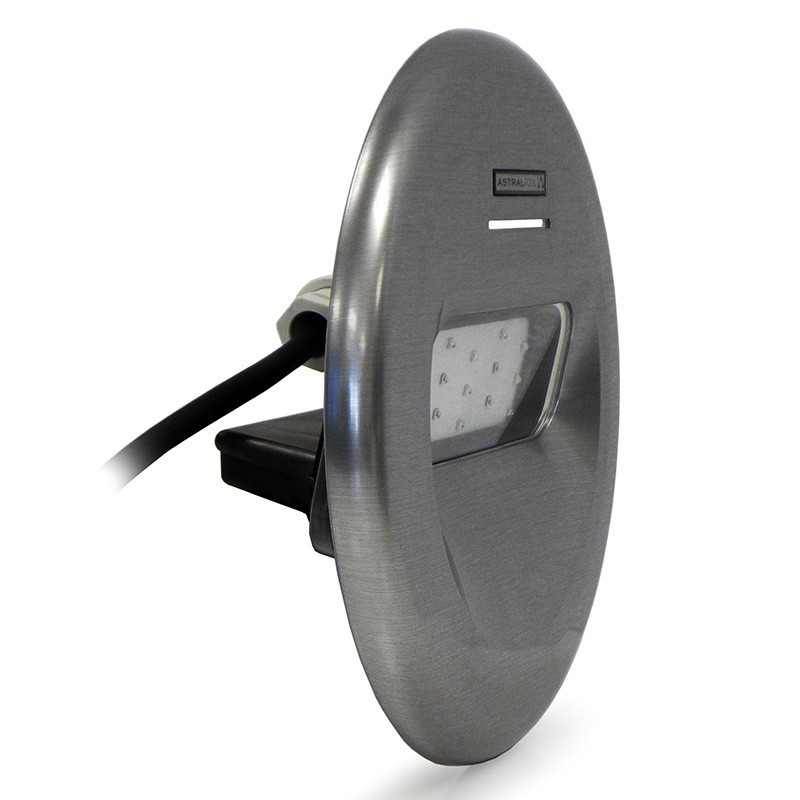 Está orientado a 14º para iluminar de forma mais específica o fundo da sua piscina. Recomenda-se instalar um foco por 25 m² de superfície.