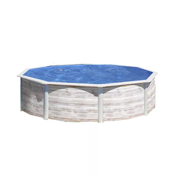 A piscina Groenlândia circular foi criada pela reconhecida marca de piscinas GRE. Fabricante francés que amostra pela primeira vez o seu mais único e inovador desenho de piscinas de aço com a gama Dream Pool. O modelo Groenlândia recebe este nome pelo seu aspeto frío e nórdico que lembra um ambiente gelado e coberto de neve. Com uma estética de madeira branca, a piscina de superfície destacará por cima de qualquer outra piscina. Não obstante, o modelo Groenlândia não chama a atenção única e exclusivamente pelo seu aspeto branqueado e escandinavo, mas sim também pelo material com o que está construída. Fabricada com o melhor aço da região francesa, a piscina é resistente à água e à oxidação, pelo que, coom um bom cuidado e manutenção, desfrutará da piscina durante muitos anos. Decida entre 3 tamanhos diferentes para poder desfrutar de um refrescante banho na comodidade de sua casa. A gama de piscinas Dream Pool adapta-se às necessidades do seu jardim e terrasso, pelo que pode optar pelo modelo que se ajuste mais ao espaço disponível. Outra prestação que incorpora é o filtro de areia que está incluído com a piscina. Graças a ele, a água vai-se manter limpa durante ainda mais tempo e livre de partículas de sujidade.Caraterísticas técnicas Piscina Groelândia