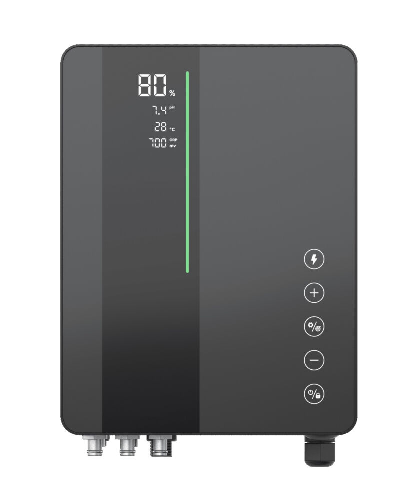 único clorador salino Inverter no mercado, ou seja, regula-se automaticamente em função do que a piscina precisa,