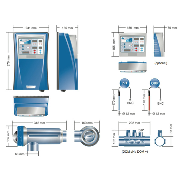 Clorador Salino Domotic Idegis pH e ORP Dimensões