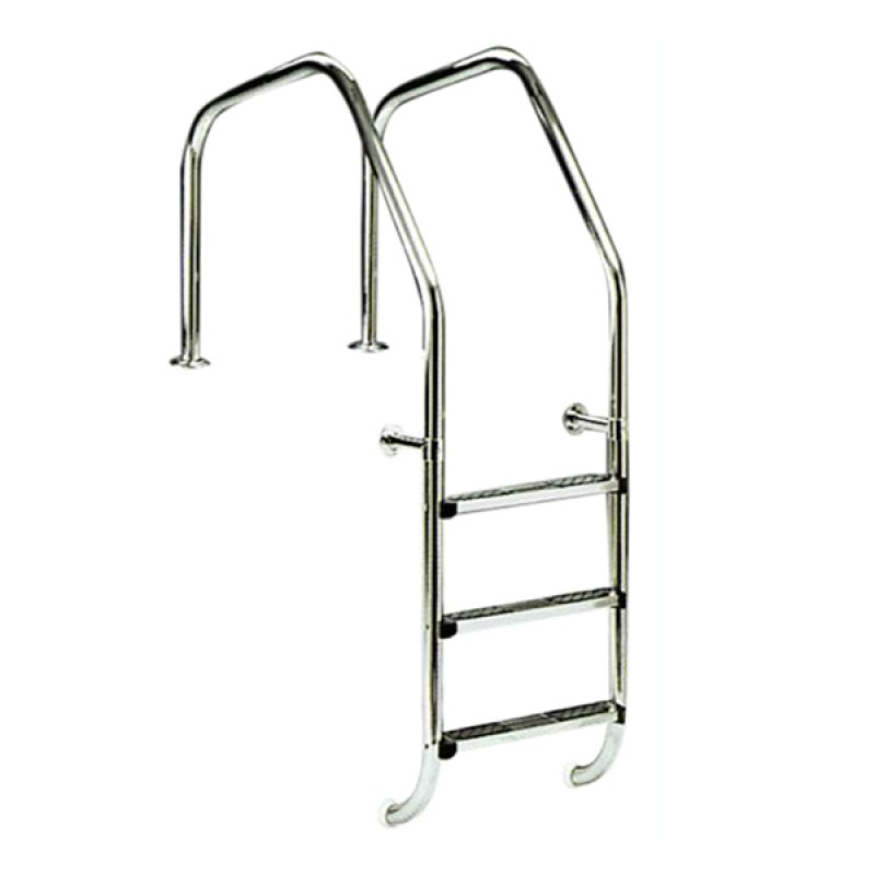 MODELOS 2 degraus + degrau de segurança 3 degraus + degrau de segurança Elegante escada fabricada por Astralpool em aço inoxidável AISI-304 de estrutura com grande resistência que cumpre com a normativa europeia. Um modelo pensado para piscinas com sistema de transbordo para a filtragem da água com corrimão de grandes dimensões e degraus tipo “Luxe” anti deslizantes. Fornece-se com as correspondentes ancoragens para a sua correta fixação a betão com tomada de segurança equipotencial que evita possíveis choques elétricos. Disponível em 4 modelos todos com o primeiro degrau de segurança de dupla grossura. Escada de grande qualidade especialmente pensada para piscinas privadas ou residências com sistema de trasbordo.Características técnicas da escada para Trasbordamento Modelo 1000