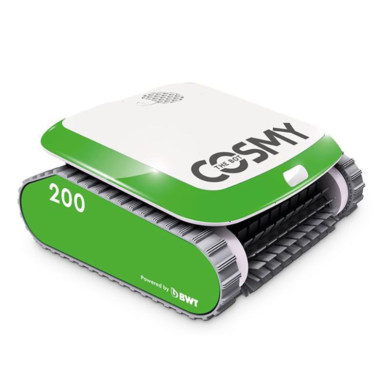 O aspirador Aquabot Cosmy 200 da BWT dispõe de uma estrutura em PVC equipada com 2 motores e um sistema de tração que permite mover-se por toda a superfície da piscina. O sistema de propulsão do robô o impulsará através do chão, ajudando a trepar paredes e até mesmo na zona da linha de água, sitio onde acostuma ter muita acumulação de resíduos. Apto para qualquer forma e revestimento, pelo que é um modelo apto para qualquer tipo de piscina enterrada.