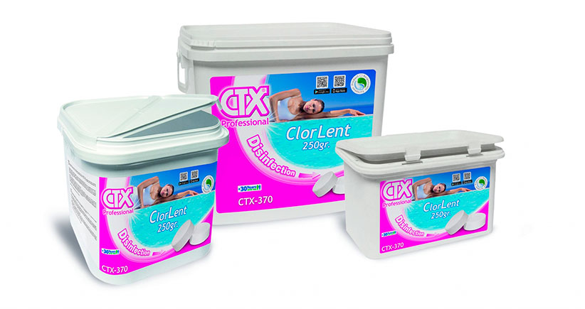 O CTX-300gr é um tricolo granulado de dissolução lenta com um 90% de cloro útil, altamente estabilizado para a desinfeção da água de piscinas. O tricoloro como desinfetante garante cloro residual.